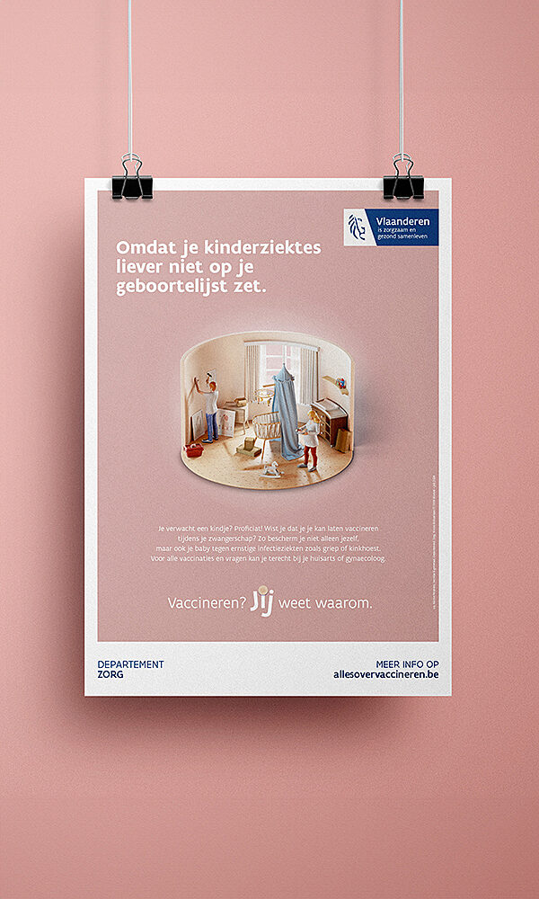 The Flemish Department of Health aims for a cohesive communication strategy for its various vaccination campaigns throughout the year. To increase public trust in vaccines, OVAL developed a powerful concept: 'Vaccination? You know why.'