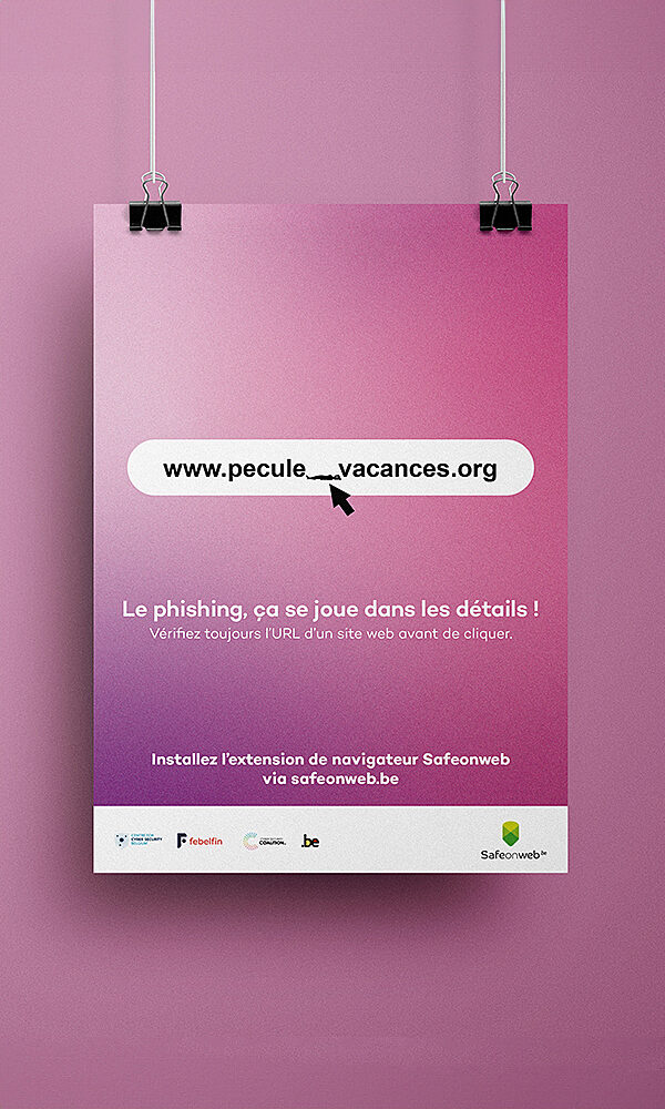 Les cybercriminels profitent du fait que l’on vérifie rarement les adresses URL. Un signe de ponctuation en plus ou une petite faute d'orthographe passent souvent inaperçus… Et c'est exactement ce sur quoi les cybercriminels comptent. D’où le message clé de notre campagne : « Le phishing, ça se joue dans les détails ! »